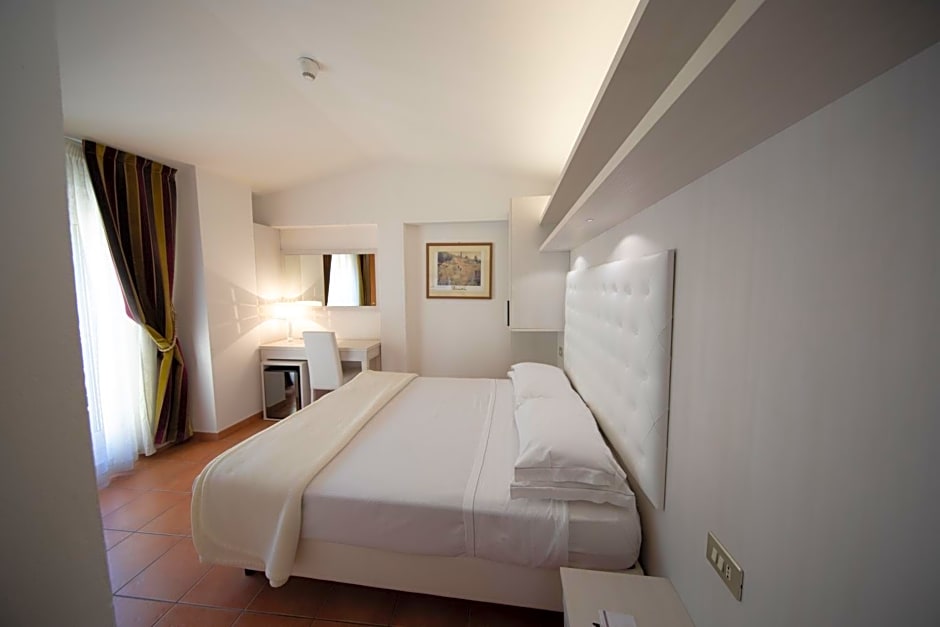This larger room is generally on the top floor and offers views across Bologna's rooftops. Some have wood-beamed ceilings that date back to the 1300s. It also includes an LCD TV, free Wi-Fi and a private bathroom with shower.